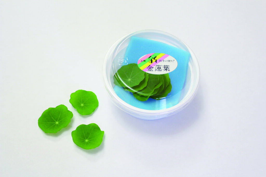 上勝町 彩では、その葉っぱを「金蓮葉」という商品名で出荷しています。読みは「きんれんぱ」です。