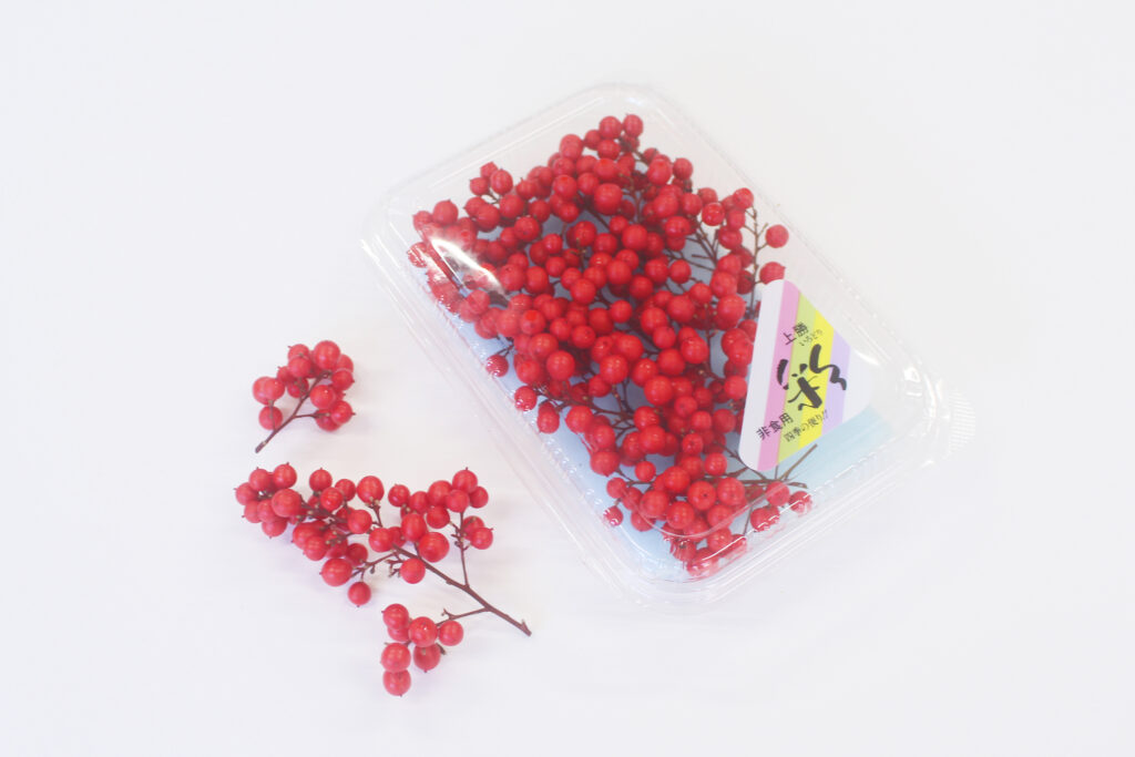 艶やかな赤い実が目を引く南天は、おせち料理のあしらいにぴったり。
