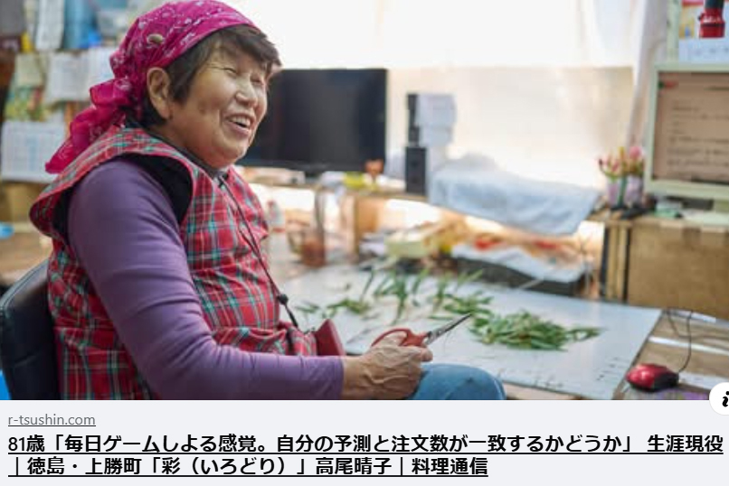 料理通信 生涯現役シリーズに彩(いろどり)農家さんが掲載されました 生涯現役でできる仕事だけれど葉っぱビジネスは簡単では無いことを語ってくれています。「出荷時期にベストで出せるよう逆算して手入れするんよ!」 ぜひご一読く …